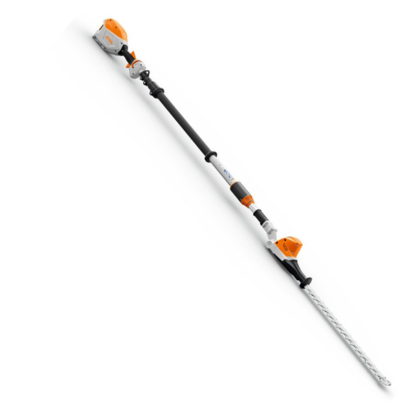 With a total length of up to 330 cm, the STIHL HLA 86 is a cordless long-reach hedge trimmer that is ideal for caring for tall hedges, bushes and even plants close to the ground. Professionals in gardening and landscaping, local authorities and caretakers are particularly impressed by the high ergonomics thanks to the weight-reduced square telescopic shaft. With the long-reach hedge trimmer, you can extend your reach by a total of 70 cm without tools. The double-sided cutting blades ensure a clean cutting pattern. These are driven by an EC engine that operates so quietly that you can also work in noise-sensitive areas such as residential.