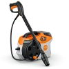 The STIHL REA 60 PLUS battery-powered pressure washer is a compact, lightweight and portable device suitable for cleaning tasks in places without a power or water connection, as well as around the house and garden. On a leaf-strewn garden plot, a campsite or at home – with this battery-powered pressure washer you can efficiently carry out a range of domestic cleaning tasks wherever you are. For example, it can be used to efficiently clean garden furniture, terraces or steps. The STIHL REA 60 PLUS offers you the best possible mobility and flexibility.