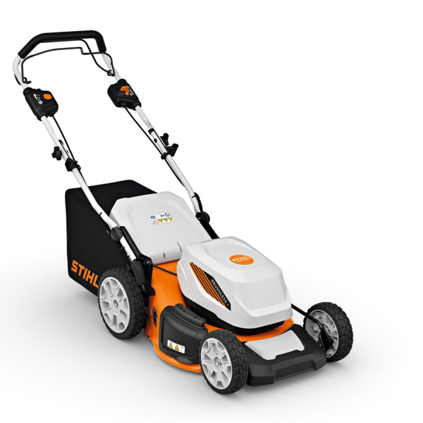 The STIHL RMA 348 V has a robust sheet steel housing and central cutting height adjustment, which allows you to choose the desired cutting length in 7 settings from 25 mm to 100 mm. The textile grass catcher box with 60-litre volume is easy to empty. Thanks to the folding handlebar, you can store the battery mower compactly and transport it effortlessly.